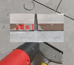 首先要将之前有问题的美缝清理掉,使用热风枪配合铲刀清理,清理缝隙的深度至少要3mm,以保证后续美缝剂能够打饱满与瓷砖的粘性更强不易脱落。