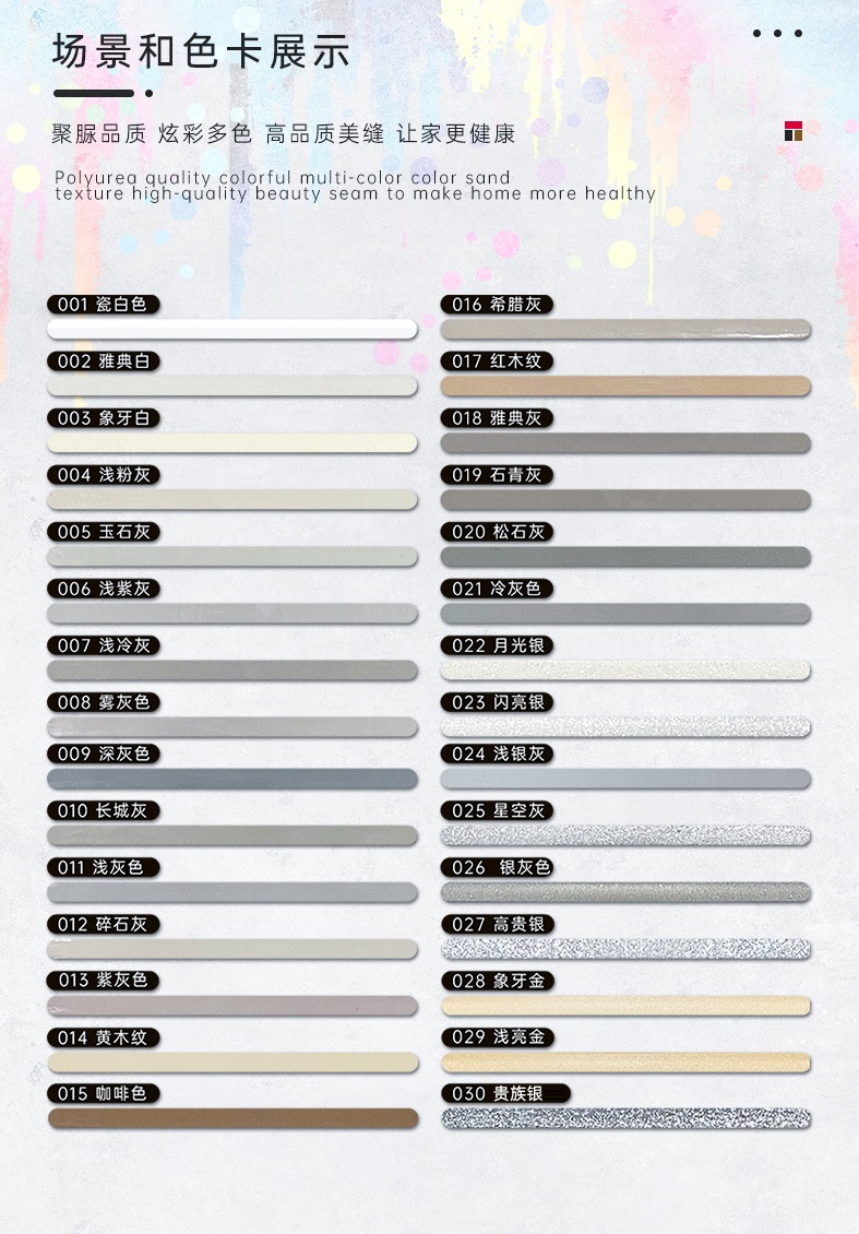 区别于市面上的半聚脲产品、假聚脲产品,速缝先生是纯聚脲美缝剂,原材料采用AB组双组份,A组份为聚天门冬氨酸酯树脂,B组份为固化剂异氰酸酯,所以从根本源头上速缝先生是纯聚脲美缝剂,才能拥有聚脲的优势性能。