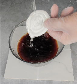 同时我们用速缝先生聚脲美缝剂彩砂打了一个小饼,固化后全部浸入酱油中,三天后拿出用清水也可以轻松冲洗干净,完全没有变色。