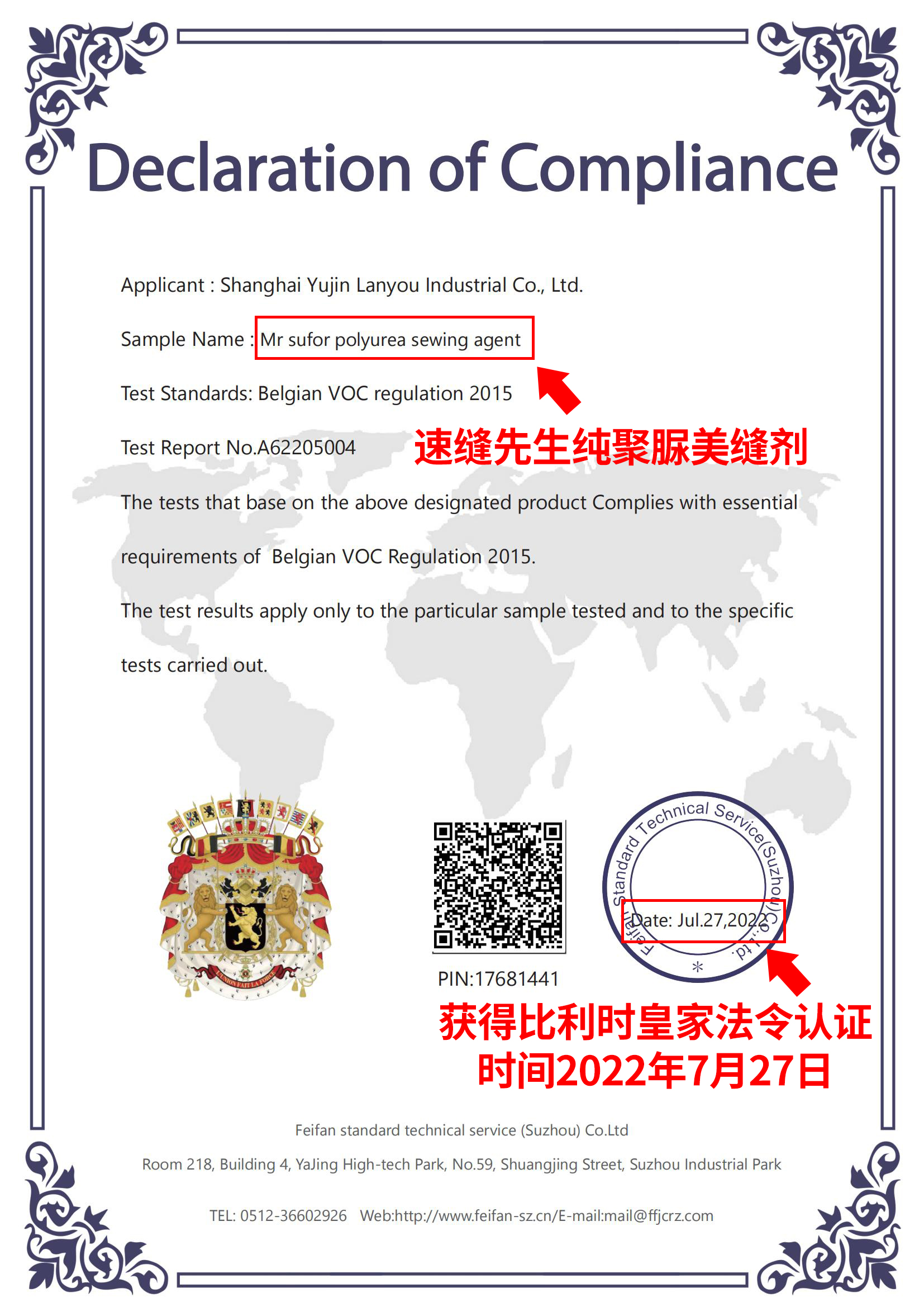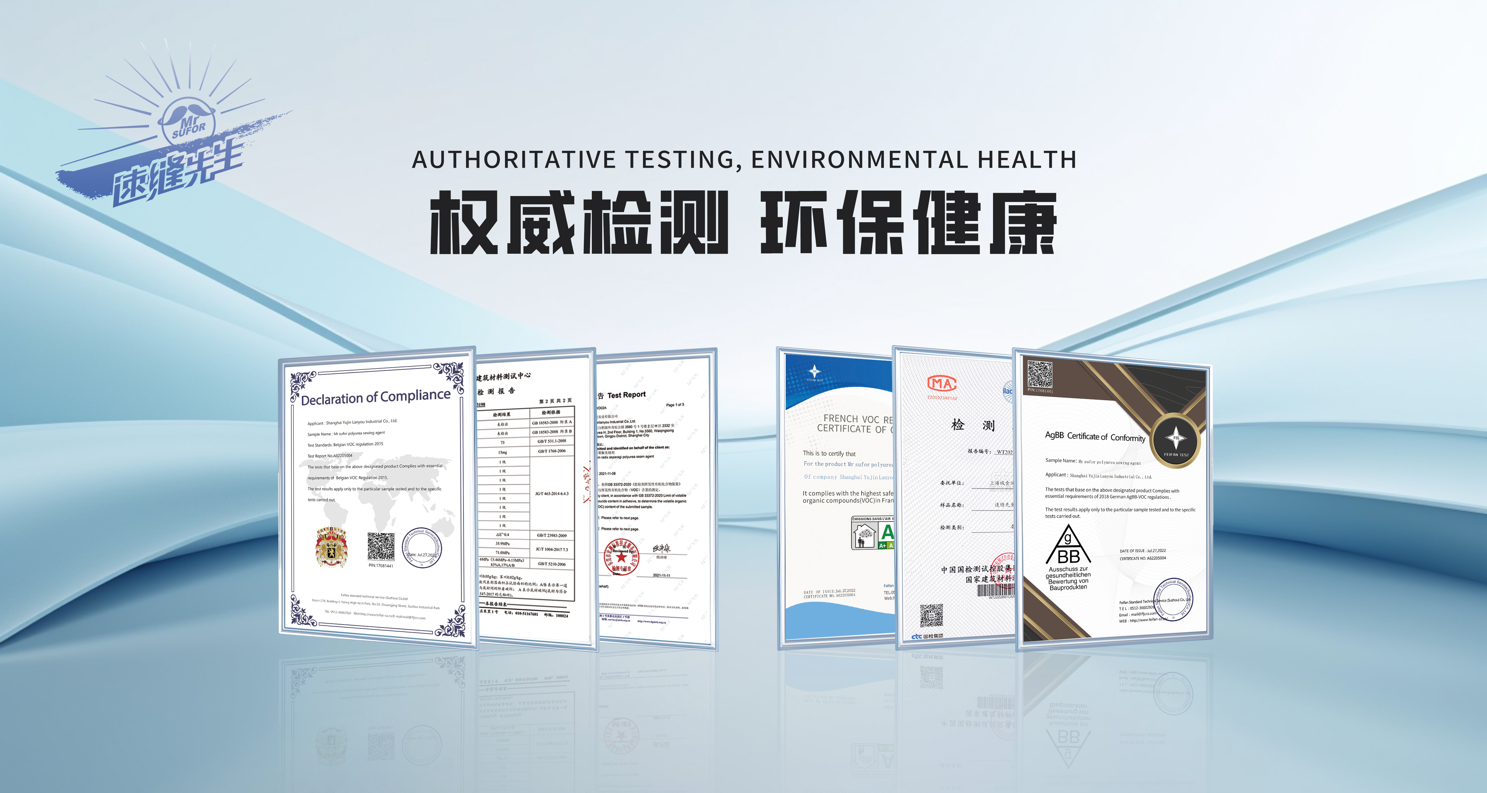 速缝先生严格执行国家标准,并且参照更加严格的团体标准:T/CECS 10158-2021《天冬聚脲美缝剂》,将挥发性有机化合物(VOC)含量控制在极低水平。速缝先生的产品在环保性能上行业领先,超低VOC含量,游离甲醛未检出。
