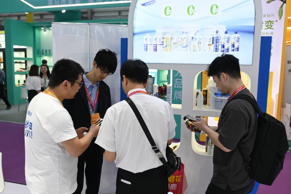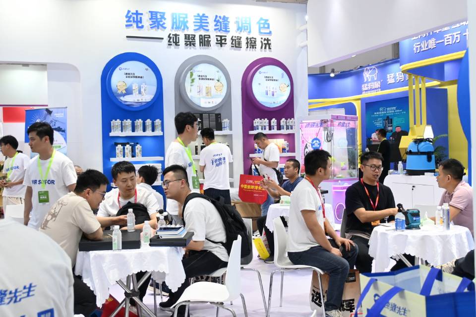 速缝先生纯聚脲美缝剂和速缝先生聚脲专用擦洗液,以及为平缝擦洗研发的擦洗机器在整个工艺上形成完整闭环,结合品牌“一户一保”售后服务体系,让平缝擦洗工艺更人性化,慕名而来的参展人员接踵而来。