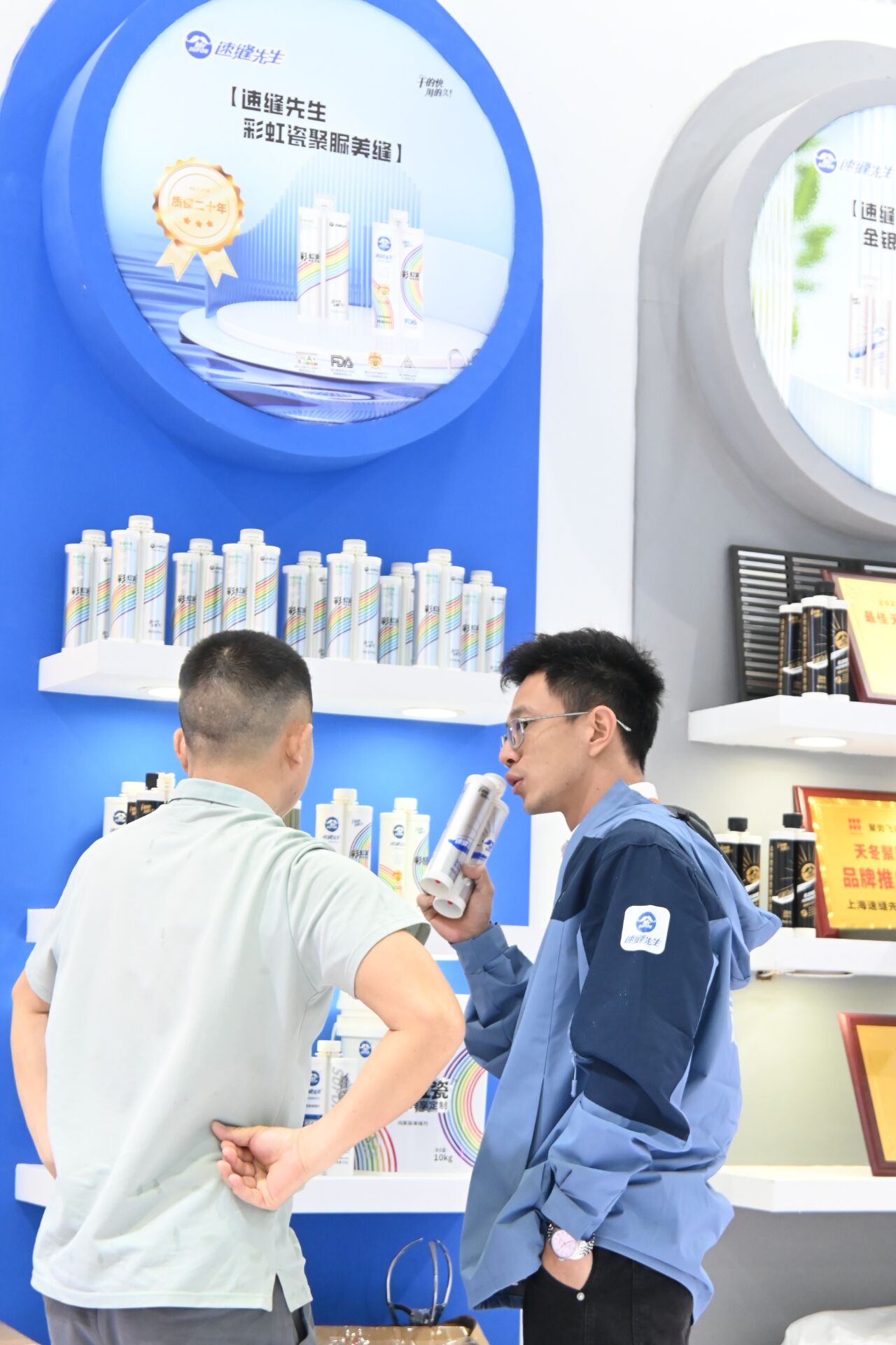 速缝先生耐磨美缝剂新品亮相,参观者对我们的产品表现出浓厚的兴趣,并在现场进行了深入地交流和讨论。